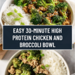 This 30-minute high-protein chicken and broccoli bowl is a flavorful and healthy meal featuring tender ground chicken simmered in a sweet and spicy sauce, paired with crisp-tender seared broccoli. It’s a quick skillet dish perfect for busy weeknights, combining Asian-inspired flavors with wholesome ingredients.