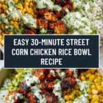 This 30-Minute Street Corn Chicken Rice Bowl is a vibrant and flavorful meal that combines tender, spiced chicken with sweet charred corn and a zesty cilantro-lime sauce. Perfect for a quick weeknight dinner, it brings the taste of street food right to your table with minimal fuss.