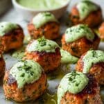 PrintBaked Salmon Meatballs with Creamy Avocado Sauce Recipe