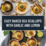 This simple and flavorful baked sea scallops recipe features jumbo scallops seasoned with garlic, red pepper flakes, and olive oil, then baked to perfection and garnished with fresh lemon and dill. It’s a quick, elegant dish perfect for seafood lovers looking for a healthy and delicious meal.