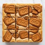 Delicious and rich Biscoff Blondies made with melted white chocolate, Biscoff spread, and crunchy Biscoff cookies. These soft and chewy blondies combine the caramelized flavor of Biscoff with a buttery white chocolate base for an indulgent dessert that’s perfect for any occasion.
