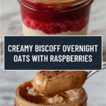 Keywords: Biscoff, Overnight Oats, Healthy Breakfast, Vegan Breakfast, Make Ahead, No-Cook, Rolled Oats, Raspberries, Lotus Biscoff, Dairy-Free Option