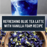 A visually stunning and refreshing Blue Tea Latte made with vibrant butterfly pea flower tea, subtly sweetened vanilla cold foam, and your choice of milk for a creamy, caffeine-light beverage perfect for any time of day.