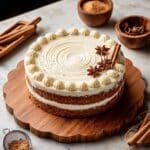 This Brown Sugar Chai Cake features two moist and tender cake layers infused with warm chai spices such as cinnamon, cardamom, ginger, and cloves, perfectly complemented by a smooth and tangy cream cheese frosting. The cake is wrapped in cake strips during baking for even layers, then frozen to achieve clean and easy frosting application. It’s an ideal festive dessert to impress guests with its cozy flavors and beautiful presentation.
