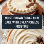 Keywords: brown sugar cake, chai cake, cream cheese frosting, spiced cake, holiday cake, American dessert, chai spice cake, moist cake