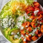 - Cheese and Dressing: Sprinkle shredded cheddar cheese over the bowls and drizzle with your choice of ranch or blue cheese dressing.