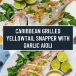 Caribbean Grilled Yellowtail Snapper is a vibrant and flavorful dish that combines fresh herbs, spicy peppers, and zesty lime. This whole grilled snapper is perfect for outdoor cooking and pairs beautifully with a creamy garlic aioli. It’s a delicious way to bring a taste of the tropics to your table.