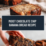 Keywords: banana bread, chocolate chip banana bread, easy banana bread recipe, moist banana bread, homemade banana bread, baking recipe, chocolate chips, snack, breakfast