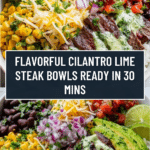 Keywords: Cilantro lime steak bowls, steak marinade, Mexican bowl, easy dinner, weeknight meal, flank steak recipe, healthy bowls