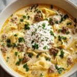 Creamy Alfredo Lasagna Soup is a comforting and hearty dish perfect for cozy evenings. This soup blends the rich flavors of Italian sausage, creamy Alfredo sauce, lasagna noodles, and melty cheeses into a delicious bowl of warmth, combining the best elements of lasagna in an easy-to-make soup form.