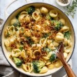 This creamy vegan broccoli and shells recipe is a comforting, plant-based pasta dish featuring tender broccoli florets and shells in a rich, dairy-free cream sauce. Enhanced with crispy shallots, smoky paprika, and fresh thyme, it’s perfect for a cozy weeknight dinner that’s both satisfying and flavorful.