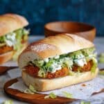 This Crispy Chicken Caesar Sandwich combines tender, golden-fried chicken cutlets with a creamy, tangy Caesar dressing and fresh romaine lettuce, all nestled inside a crusty French baguette. The sandwich is elevated by a homemade Caesar dressing with parmesan and garlic, offering a delicious twist on a classic flavor profile. Perfect for a satisfying lunch or casual dinner.