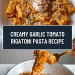 Keywords: Tomato pasta, creamy pasta, garlic pasta, easy weeknight dinner, Italian pasta recipe, rigatoni recipe, creamy tomato sauce