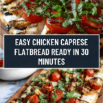This Easy Chicken Caprese Flatbread is a quick and delicious option for a weeknight meal or casual gathering. Combining fresh tomatoes, mozzarella, basil pesto, and tender chicken on a crispy flatbread, it brings the flavors of Italy right to your kitchen in just 30 minutes.