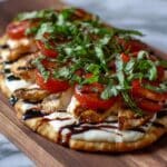 Keywords: Chicken Caprese Flatbread, Easy Flatbread Recipe, Quick Italian Dinner, Basil Pesto Chicken Flatbread, Mozzarella Tomato Flatbread