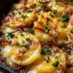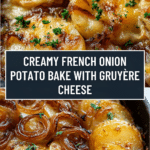 Keywords: French Onion Potato Bake, baked potatoes, caramelized onions, Gruyère cheese, cheesy potato casserole, easy side dish, French cuisine