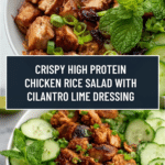 This Easy High Protein Crispy Rice Salad combines tender chicken, crunchy rice, and fresh vegetables in a vibrant cilantro lime dressing. It’s a satisfying and flavorful meal perfect for lunch or dinner that’s both nutritious and delicious.
