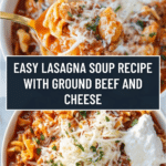 Keywords: lasagna soup, easy soup recipe, Italian soup, comfort food, ground beef soup, hearty soup, lasagna noodle soup