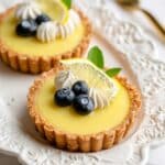 These Easy Vegan Lemon Tarts feature a crisp and buttery shortbread crust made with coconut oil, filled with a smooth, tangy lemon coconut cream filling. Perfect for a refreshing dairy-free dessert that balances sweetness and citrus zing with a creamy texture. Ideal for vegan and plant-based diets.