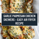 Garlic Parmesan Chicken Skewers are a flavorful and juicy dish perfect for a quick weeknight meal or a weekend gathering. Infused with garlic, parmesan, and a hint of spice, these skewers cook quickly in the air fryer for a deliciously tender bite every time.