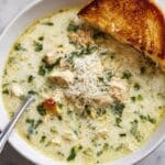 Keywords: Garlic Parmesan Chicken Soup, creamy chicken soup, easy chicken soup, comfort food, chicken soup with spinach, Parmesan soup