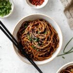- Serve and Garnish: Transfer the noodles to serving bowls and garnish with chopped scallions, red pepper flakes, and crushed peanuts for extra texture and flavor. Enjoy immediately.