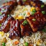 This Honey BBQ Chicken Rice is a delicious one-pan meal that’s perfect for busy weeknights. Tender chicken thighs simmer in a flavorful blend of BBQ sauce and honey, cooked together with rice and vegetables for an easy, satisfying dish.