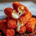 Keywords: Hot Cheeto Mozzarella Sticks, spicy mozzarella sticks, air fryer snacks, Flamin Hot Cheetos recipe, crispy cheese sticks