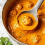 Indian Butter Shrimp is a rich and creamy dish featuring succulent shrimp cooked in a buttery, spiced tomato and cashew sauce, finished with heavy cream and fresh cilantro. This delightful seafood recipe combines traditional Indian flavors with a smooth, velvety texture, perfect to serve with basmati rice or naan bread.