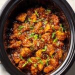 This Irresistible Crockpot Orange Chicken recipe features tender, bite-sized chicken pieces coated in cornstarch, lightly browned in olive oil, and then slow-cooked in a vibrant orange marmalade-based sauce with savory soy, ginger, garlic, and warming sesame notes. Finished with a sprinkle of sesame seeds and fresh scallions, it’s a deliciously tangy and sweet meal perfect served over steamed rice.