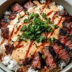 PrintKorean BBQ Steak Rice Bowls with Spicy Cream Sauce Recipe