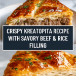 Kreatopita is a delicious Greek meat pie known for its flavorful filling wrapped in crispy, buttery phyllo dough. This savory dish combines ground beef, rice, and aromatic seasonings, making it a comforting meal perfect for family dinners or special occasions.