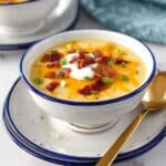 Keywords: potato gnocchi soup, loaded soup, bacon soup, creamy potato soup, cheddar cheese soup