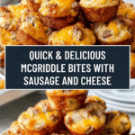 Start your morning with these delightful McGriddle Bites—sweet sausage muffins that combine the flavors of breakfast sausage, maple syrup, and cheddar cheese in a convenient bite-sized form. They’re perfect for quick mornings when you want something satisfying and easy to grab on the go.