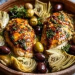 This Mediterranean Lemon Chicken with Artichokes & Olives is a vibrant, flavorful dish perfect for a weeknight dinner or special occasion. Tender chicken thighs simmered with bright lemon, briny olives, and tender artichokes create a deliciously balanced meal that’s simple to prepare.