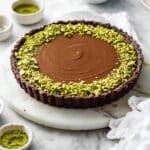 - Garnish and Serve: Carefully remove the tart from the tin and place it on a serving plate. Sprinkle chopped pistachios around the edges for texture and visual appeal.