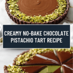This no-bake chocolate tart with pistachio paste is a rich and creamy dessert that combines the deep flavor of dark chocolate with the nutty sweetness of pistachios. It’s perfect for anyone looking for an impressive yet easy-to-make treat that requires no oven time.