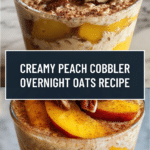 This Peach Cobbler Overnight Oats recipe combines the comforting flavors of caramelized peaches, cinnamon, and toasted pecans with creamy almond milk-soaked oats. Prepared by layering warm, sweetened peaches and oat mixture, then refrigerated overnight, it makes a delicious, wholesome, and easy-to-make breakfast that’s perfect for busy mornings or a nutritious snack.