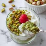 This Pistachio Overnight Oats recipe offers a creamy, nutrient-packed breakfast that is easy to prepare the night before. Made with non-dairy milk and pistachio butter, it combines wholesome oats with chia seeds for added texture and nutrition. Sweetened naturally with maple syrup and flavored with vanilla, this refreshing dish is topped with non-dairy yogurt, fresh raspberries, and crunchy chopped pistachios for a delightful start to your day.