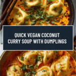 This Quick Coconut Curry Soup with Dumplings is a comforting and flavorful vegan dish that’s perfect for any day you crave something warm and satisfying. Creamy coconut milk meets the boldness of Thai curry paste, combined with tender dumplings that soak up the delicious broth. It’s simple to make and full of vibrant, aromatic flavors.