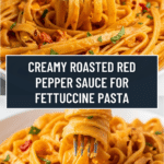 This Roasted Red Pepper Sauce recipe features smoky, sweet roasted red peppers blended into a creamy, flavorful sauce enhanced with garlic, cream, Parmesan cheese, and fresh basil. Perfectly paired with fettuccine, this sauce is a delightful twist on traditional pasta dishes, offering a rich and vibrant flavor that elevates any meal.