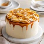 Keywords: salted caramel cake, caramel buttercream, vanilla cake, layered cake, homemade caramel, dessert