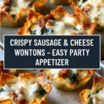 These crispy sausage and cheese wontons make the ultimate appetizer for any gathering. Packed with flavorful ingredients and baked to golden perfection, they’re sure to be a crowd-pleaser. Easy to prepare and deliciously satisfying, they’re perfect for entertaining or a tasty snack.