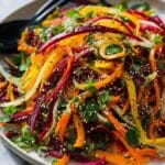 A vibrant and refreshing Shaved Rainbow Carrot Sesame Salad featuring thinly julienned carrots tossed with fresh herbs and a savory, slightly spicy sesame dressing. This easy-to-make salad offers a perfect balance of textures and flavors, making it a nutritious and colorful side dish that can be served chilled.