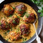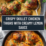 This skillet chicken thighs recipe delivers crispy, flavorful skin with tender, juicy meat. The creamy, lemony sauce with fresh herbs perfectly complements the savory chicken, making it an easy yet impressive meal for any night of the week.