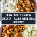 This Slow Cooker Cashew Chicken is a flavorful, paleo, Whole30, gluten-free, and low-carb dish that combines tender chicken with a rich, aromatic sauce and crunchy cashews. Perfect for a hands-off, healthy meal, this recipe uses a slow cooker to develop deep flavors and tenderize the chicken while keeping the dish simple and nutritious.