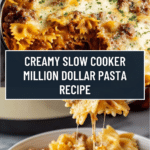 This Slow Cooker Million Dollar Pasta is a creamy, cheesy, and hearty dish that’s perfect for busy weeknights. Combining ground beef, a rich cheese mixture, and tender pasta, it all cooks slowly to develop deep, comforting flavors. It’s simple to prepare and sure to be a family favorite.
