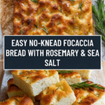 This super easy no-knead focaccia is a perfect homemade bread with minimal effort. It boasts a crispy crust, tender crumb, and delightful rosemary and sea salt topping. Ideal for beginners and busy cooks alike.