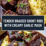 Keywords: braised short ribs, garlic mashed potatoes, slow cooked beef, comfort food, oven braised meat, hearty dinner