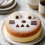 This Totoro Cheesecake is a fluffy, jiggly Japanese cheesecake that’s incredibly light and airy with a subtle sweetness. Featuring a pillowy soft texture and delicate lemon notes, it’s baked in a water bath to ensure a moist and crack-free finish. Decorated creatively to resemble Totoro, this cake is as cute as it is delicious, perfect for a whimsical dessert treat that melts in your mouth.